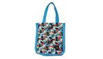Bolso casual de lona de algodón con estampa con fuelle. Producto consciente. Confeccionado con telas de forrería de zapatillas para fomentar la cultura de reutilización. Alto 40cm. Ancho 34cm. Fuelle 6cm