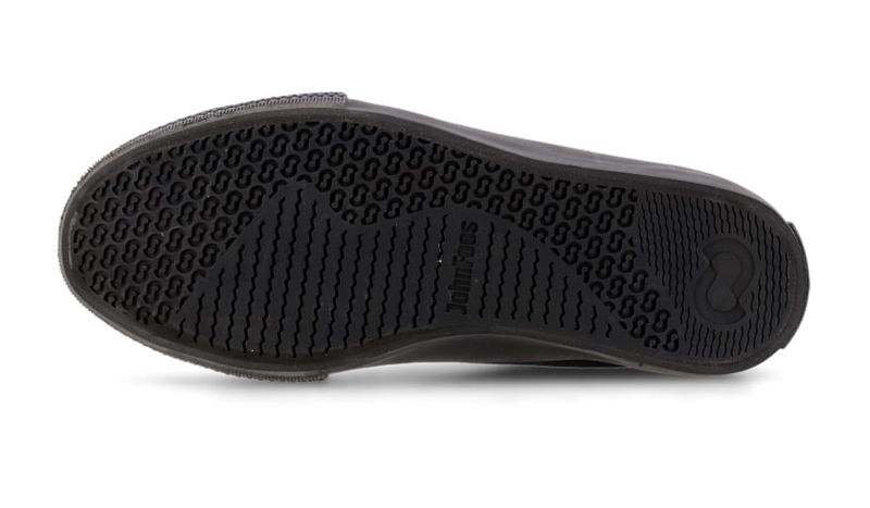 Modelo icónico John Foos de la década del ´90, reeditado para el 40° aniversario de la marca. Zapatilla de media caña en lona reteñida con bordado de logo retro. Detalles: Capellada de lona algodón 100% reteñida color negro. Cañas de lona algodón 100% reteñida color negro con bordado color gris plata. Cinta de talón de algodón color crudo. Forrería hecha 100% de microcanvas crudo. Etiqueta textil “heritage” blanca con logo y leyenda de la marca en color negro. Ojalillera de aluminio natural. Cordones chatos 100% algodón negro. Costuras hilo color beige. Plantilla extraíble confeccionada en caucho moldeado y base textil. Base de caucho vulcanizado color negro. Banda alta de caucho color negro con doble filete. Puntera y cierre de talón de caucho color negro. Contrafuerte de caucho recuperado.