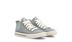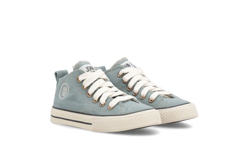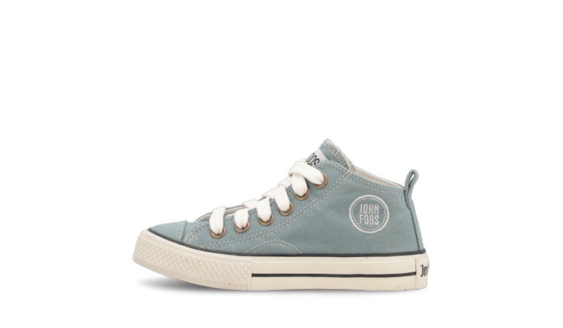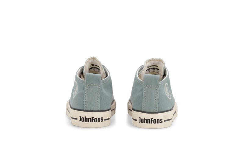Modelo icónico John Foos ahora en Kids. Zapatilla de media caña en lona color verde grisáceo con bordado de logo retro. Detalles: Capellada de lona 100% algodón de color verde grisáceo. Forrería 100% algodón color crudo. Tira de talón para ayudar con el calce. Etiqueta textil “heritage” blanca con logo y leyenda de la marca en color negro. Ojalillos color bronce. Cordones chatos 100% algodón crudo. Costuras en color beige. Plantilla extraíble de eva con base textil. Base de caucho vulcanizado color negro. Banda alta de caucho color crudo con doble filete color negro. Contrafuerte de caucho recuperado.