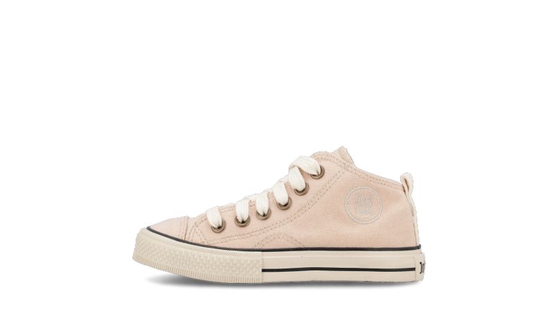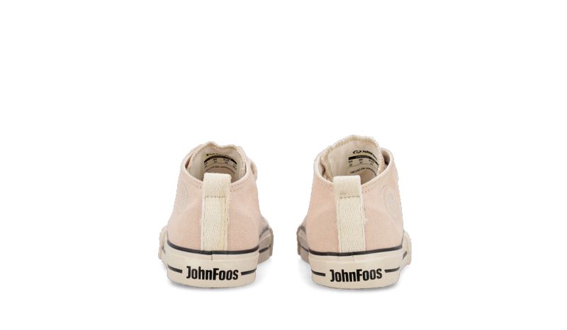 Modelo icónico John Foos ahora en Kids. Zapatilla de media caña en lona color rosa con bordado de logo retro. Detalles: Capellada de lona 100% algodón de color rosa. Forrería 100% algodón color crudo. Tira de talón para ayudar con el calce. Etiqueta textil “heritage” blanca con logo y leyenda de la marca en color negro. Ojalillos color bronce. Cordones chatos 100% algodón crudo. Costuras en color beige. Plantilla extraíble de eva con base textil. Base de caucho vulcanizado color negro. Banda alta de caucho color crudo con doble filete color negro. Contrafuerte de caucho recuperado.