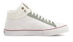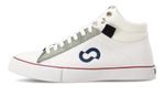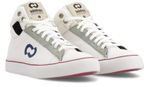 La nueva zapatilla de John Foos es una propuesta urbana y distintiva que se enfoca en los detalles. Zapatilla de caña intermedia de denim blanco combinada con lona color blanco. Detalles: aplique de lengua y cuello en lona de alta resistencia y durabilidad color blanco. Caña y capellada de denim blanco. Ojalillera en descarne verde menta. Isologo con alta frecuencia de color azul marino en aplique de caña. Relleno espumado en cuello. ForrerĂa lona 100% algodĂłn color blanco. Plantilla extraĂble de eva y base textil. Cordones de poliĂ©ster color blanco. Etiqueta textil en lengua. Ojalillos color bronce en cuello. Suela exterior color borravino. Banda y cierre de talĂłn de caucho vulcanizado de alta resistencia color blanco con detalle en color borravino. Contrafuerte de caucho recuperado.