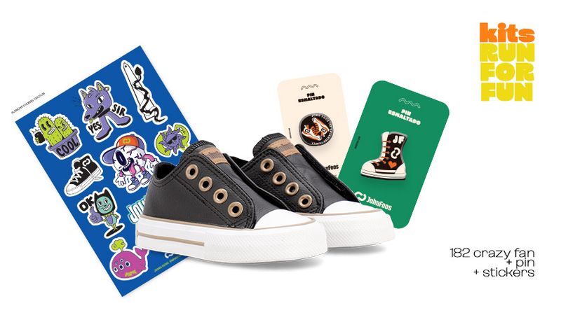 Kit Vuelta al Cole: Incluye Zapatillas 182 Crazy Fan Free Way Black Velcro + 1 Pin + Stickers