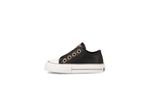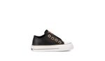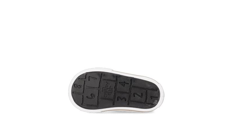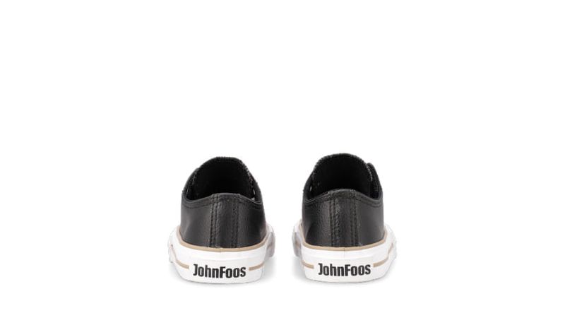 Zapatilla clásica infantil en ecocuero negro con cierre de velcro. Detalles: Capellada eco cuero full negro. Forrería hecha 100% de algodón color negro. Etiqueta de lengua en ecocuero color suela. Ojalillos de aluminio color bronce. Plantilla extraíble de eva plana y base textil. Contrafuerte de caucho recuperado. Suela exterior de caucho moldeado de alta resistencia color negro.