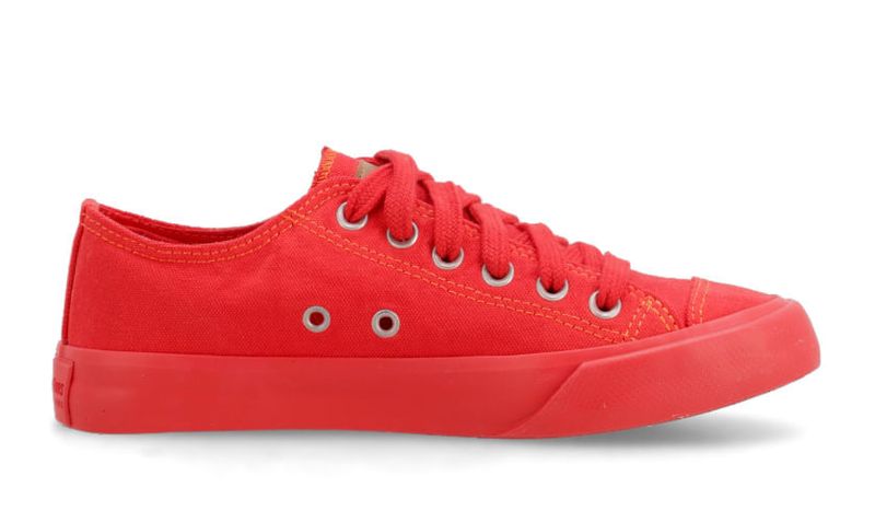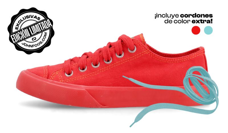 Detalles: Capellada de lona 100% algodĂłn color colorado. ForrerĂa 100% algodĂłn color colorado. Etiqueta horizontal de ecocuero color suela. Ojalillos de aluminio color natural. Cordones chatos 100% algodĂłn color colorado. Plantilla extraĂble de eva y base textil. Suela exterior y banda de caucho vulcanizado de alta resistencia color colorado. Contrafuerte de caucho recuperado.