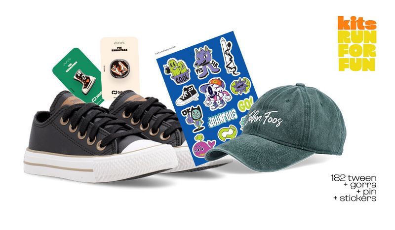 Kit Vuelva al Cole incluye: Zapatillas 182 Tween All Night Black + Gorra 050 Sign Verde + 1 Pin (diseño según disponibilidad de stock) +1 plancha de Stickers