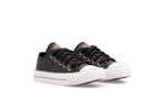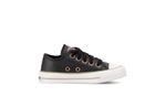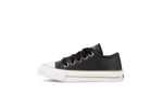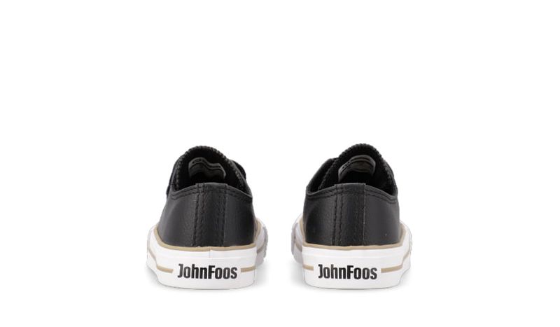Zapatilla eco cuero negro. Detalles: Capellada eco cuero full negro. Forrería hecha 100% de algodón color negro. Plantilla extraíble confeccionada en caucho moldeado y base textil. Cordones de algodón encerados negros. Etiqueta logo color suela en lengua. Ojalillera color bronce. Suela exterior y banda de caucho vulcanizado de alta resistencia. Buepe y contrafuerte de caucho