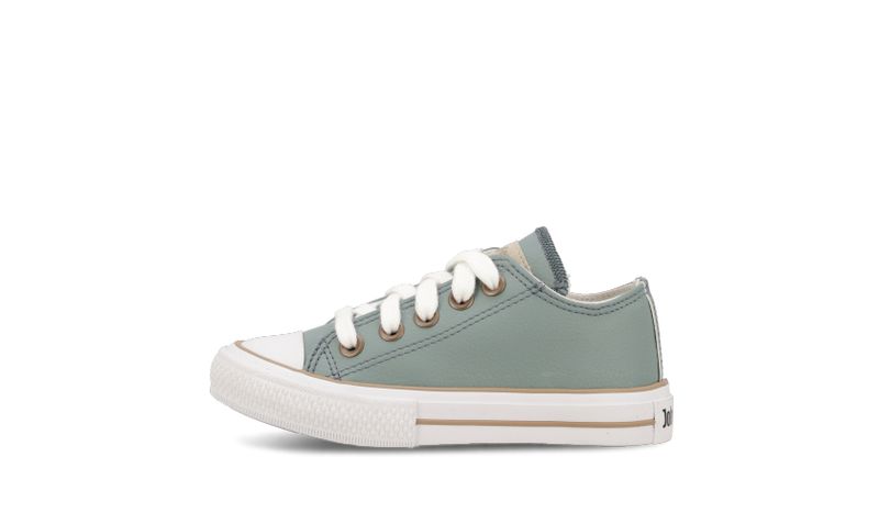 Zapatilla eco cuero color verde azulado. Detalles: capellada eco cuero color verde azulado. Forreria hecha 100% de algodón color verde azulado. Plantilla extraíble confeccionada en caucho moldeado y base textil. Cordones de algodón color verde azulado. Etiqueta color suela en la lengua. Ojalillera color bronce. Suela exterior y banda de caucho vulcanizado de alta resistencia. Buepe y contrafuerte de caucho.
