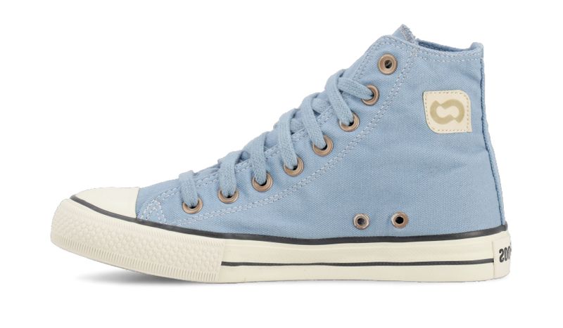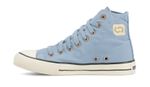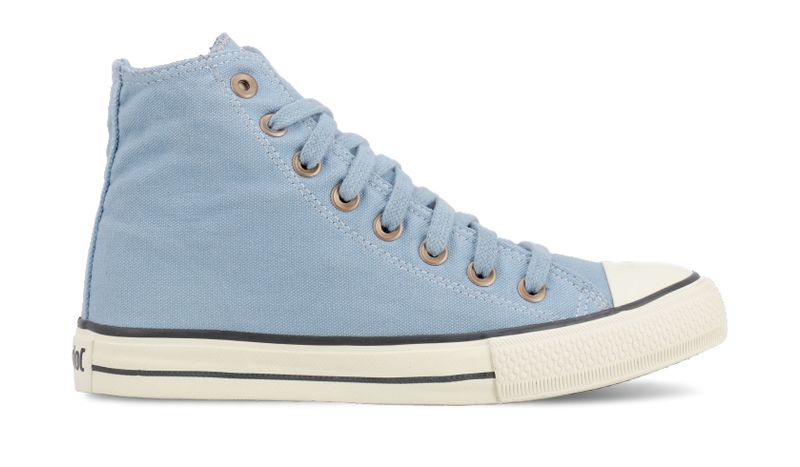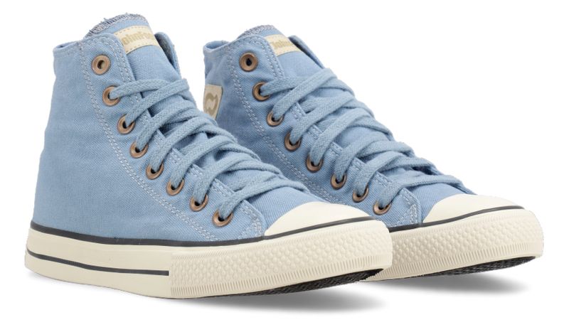 Zapatilla clásica caña alta de lona y proceso de teñido lavado color azul acero.