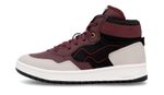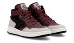 Zapatilla de caña alta. Detalles: Capellada con combinación de materiales textiles y ecocuero en colores bordó, negro y detalles en gris cálido. Logo bordado en ambos laterales color bordó. Relleno espumado en cuello y forrería de poliéster 100% bondeada de color negro. Plantilla extraíble de espuma de poliuretano y base textil para mayor comodidad y transpirabilidad. Cordones de poliéster color bordó. Lengua con pasa cordón y etiqueta textil con la marca. Contrafuerte de caucho recuperado. Suela exterior de caucho moldeado de alta resistencia con entresuela de phylon, color blanco y suelín negro.