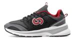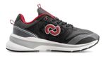 Zapatilla urbana cerrada en tejido de poliéster color negro y gris con apliques en ecocuero. Forrería y relleno mullidos a lo largo del cuello para una sensación de mayor confort.