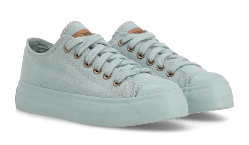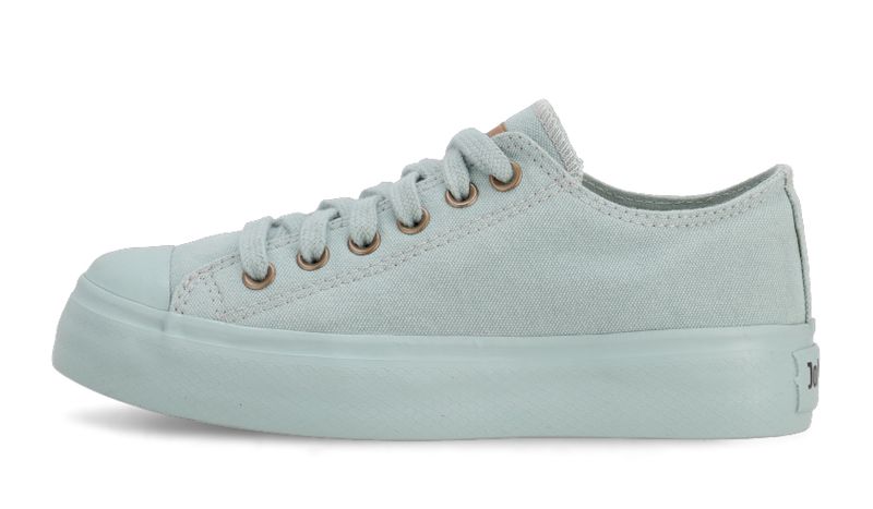 Detalles: Capellada de lona 100% algodĂłn color celeste. ForrerĂa 100% algodĂłn color celeste. Etiqueta horizontal de ecocuero color suela. Ojalillos de aluminio color bronce. Cordones chatos 100% algodĂłn color celeste. Plantilla extraĂble de eva y base textil. Suela exterior y banda de caucho vulcanizado de alta resistencia color celeste. Contrafuerte de caucho recuperado.