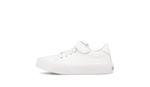 Zapatilla en eco cuero blanco. Detalles: Capellada, caña, tira empeine con velcro, colita de talón y tira talón en eco cuero blanco. Forrería de poliéster 100% bondeada de color blanco. Plantilla extraíble de eva y base textil. Relleno de espuma en cuello y lengua para mayor confort. Cordones de elástico blancos. Etiqueta de lengua en eco cuero color manteca. Contrafuerte de caucho recuperado. Suela exterior de caucho moldeado de alta resistencia color blanco.